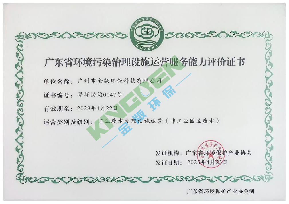 廣東省環(huán)境污染治理設(shè)施運(yùn)營(yíng)服務(wù)能力評(píng)價(jià)證書
