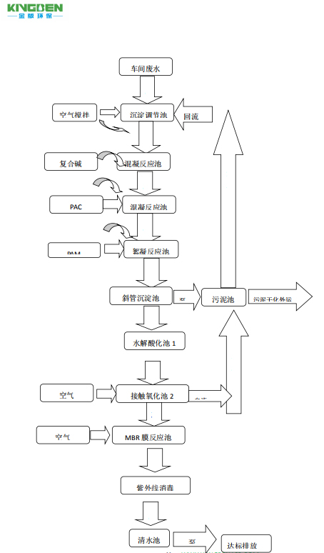 最后,再針對廢水水質、水量特點,結合小試分析,擬的工藝流程如下圖: